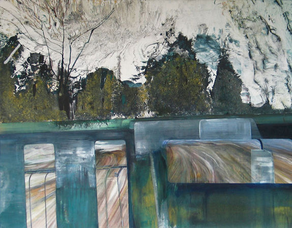 im Fall der „Vorbei-Bilder“ Aufnahmen, welche sie aus einem fahrenden Zug gemacht hat. Ihre- häufig riesengroßen- Gemälde vermitteln diesen Eindruck der einmaligen Attraktion. Sie fangen einen unwiederholbaren Moment ein, und in ihrer Authentizität sind sie äußerst vielschichtig, lebendig. (Auszug: „Landschaftsstücke“